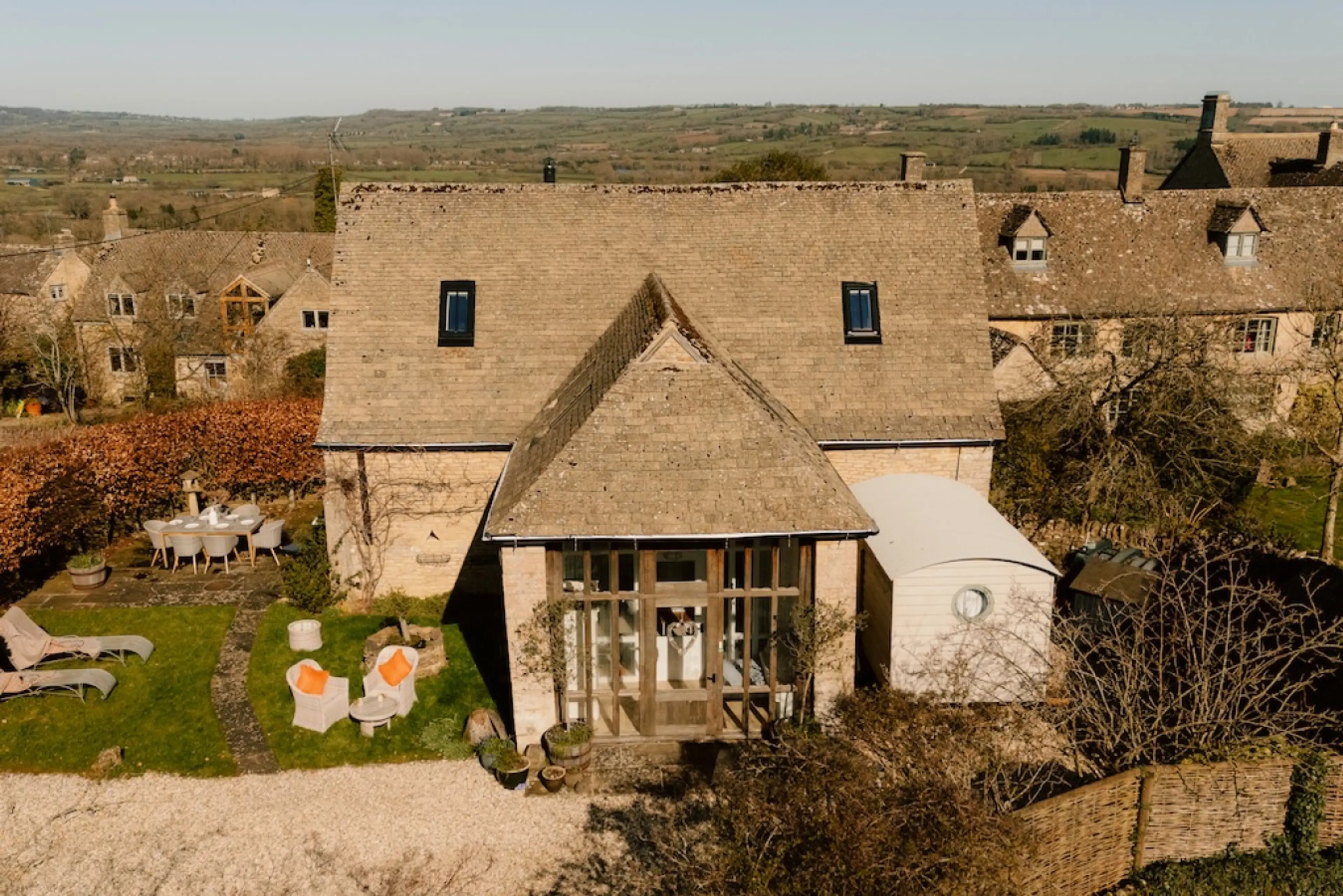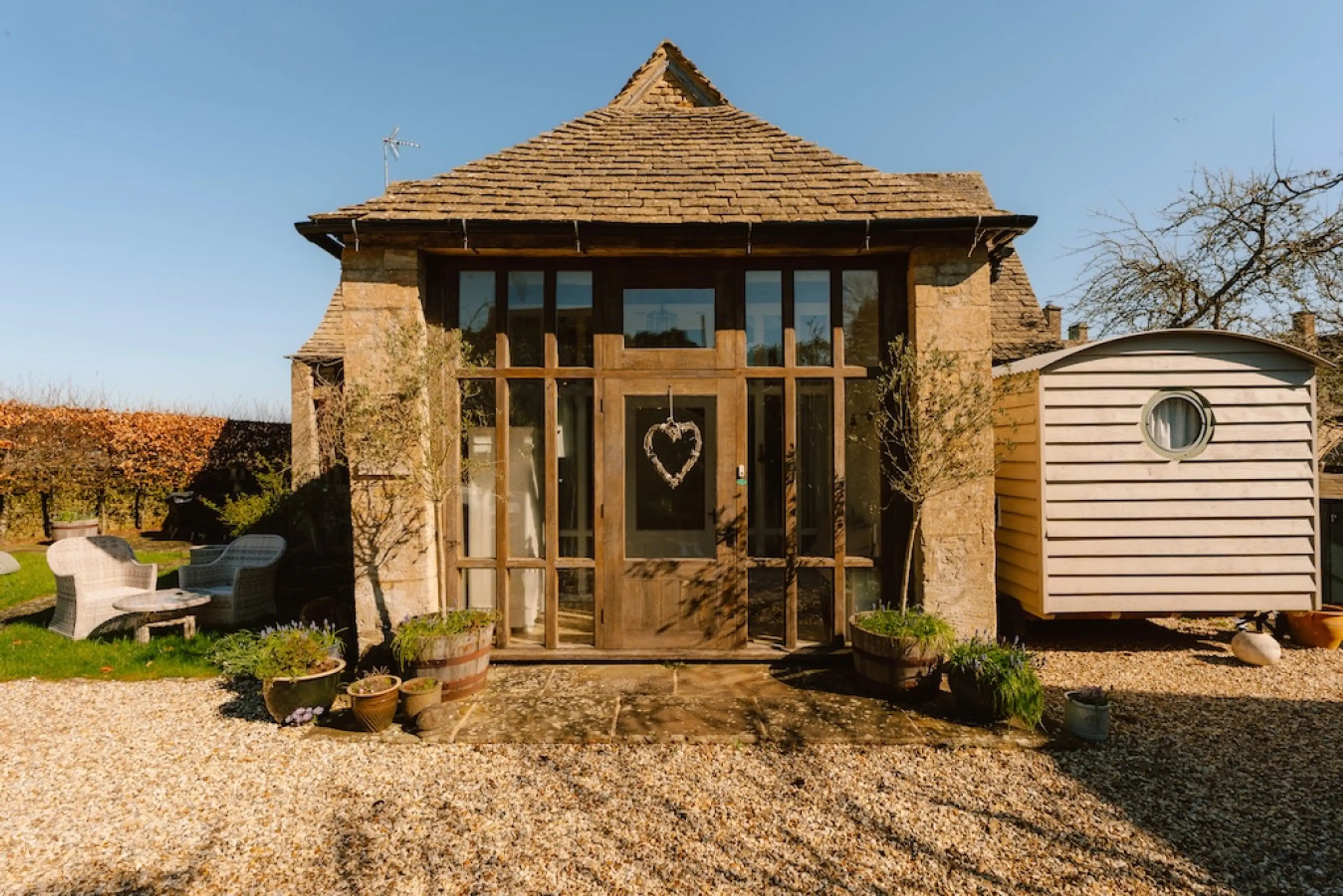 Experience luxury countryside living at Manor Farm, Clapton-on-the-Hill, in a beautifully restored two-bedroom barn with a striking central staircase and elegant interiors. Set within peaceful surroundings, the property also features a charming shepherd’s hut, perfect for additional guests or a uniq...